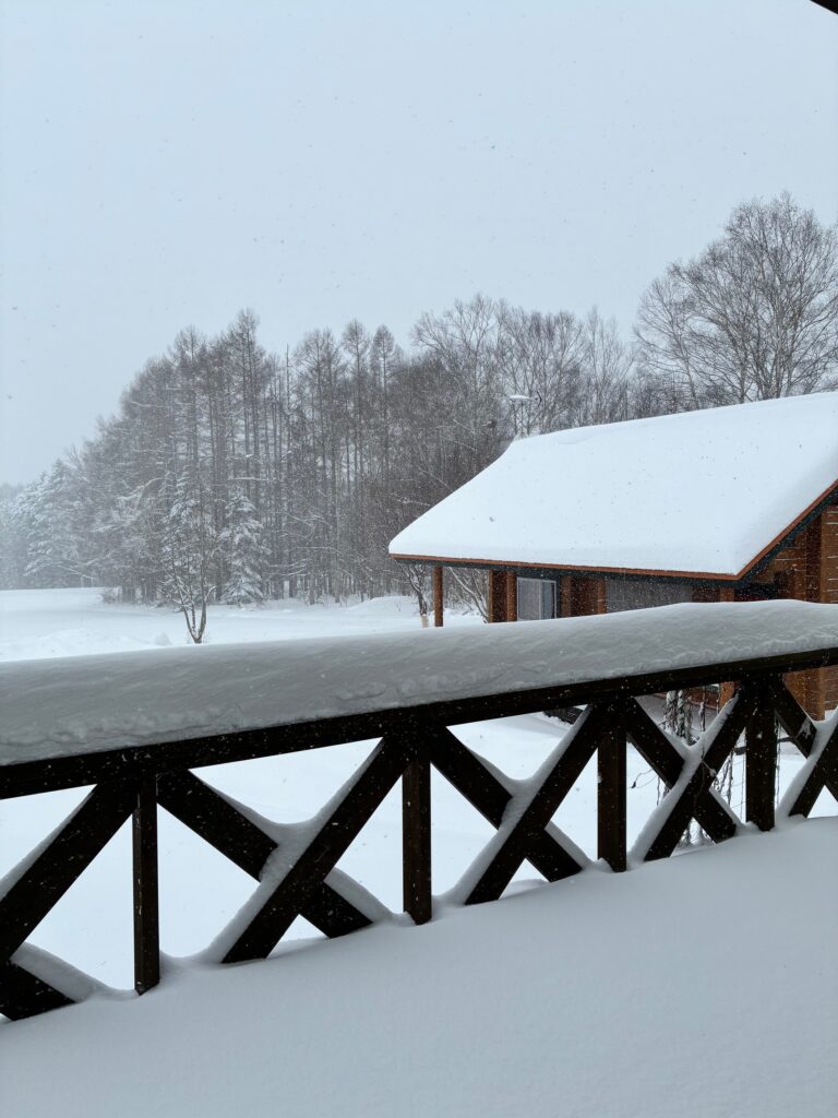 朝から、更にまた30cmほど降り積もっています。吹けば飛ぶようなパウダースノウですね、それもそのはず気温はマイナス10度近い低温です。
